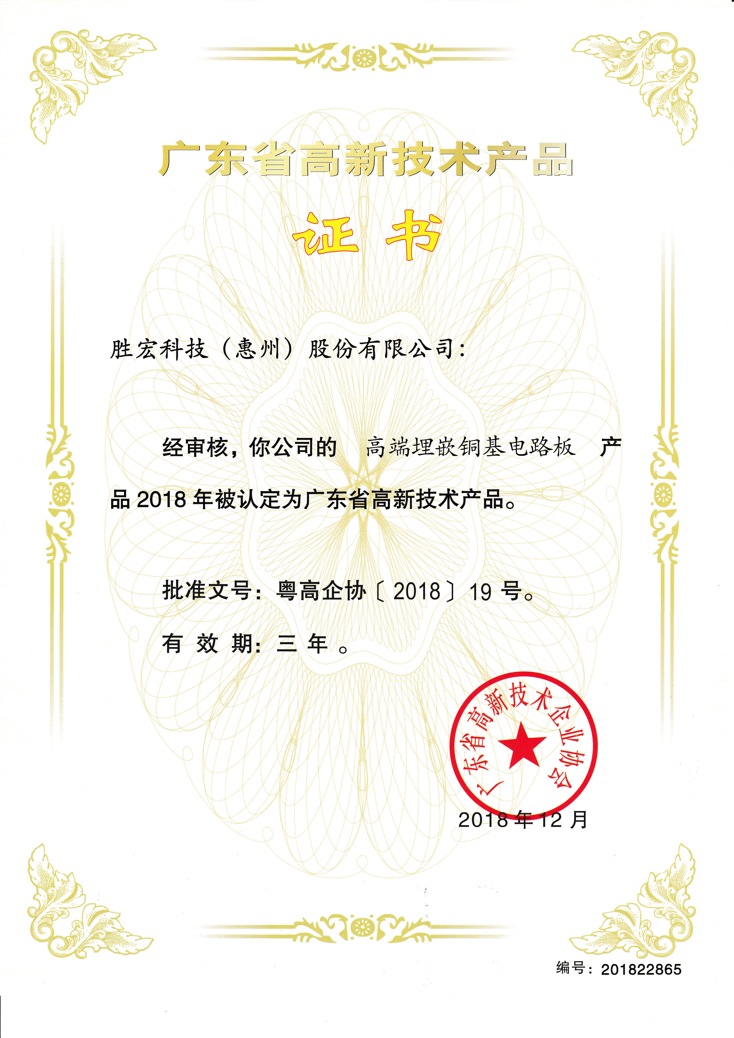 “Advanced High-Frequency PCB” Reputable High-Tech Product Certificate
